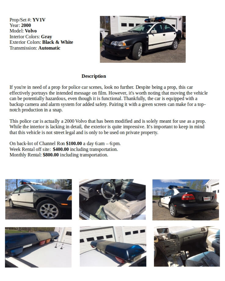 While Channel Ron's film vehicles may not be the absolute best in the industry, we have a wide selection that could meet your film's needs, including police cars and aircraft. Although most of the vehicles are operational, they are not intended for road use as they lack proper safety features and may not pass inspection. However, they are still capable of being driven without issue. We invite you to consider our vehicles for your film and give us the opportunity to provide you with the perfect vehicle.